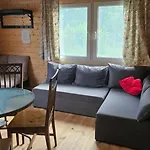 Zacisze 6 Osobowy Domek Nad Jeziorem includes a dining area with a microwave oven, an electric kettle, and a fridge. The distance to Bydgoszcz Ignacy Jan Paderewski airport is about 90 km.